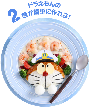 ごはんで作るドラえもんのフェイスに、鍋で作るクリームシチューと
